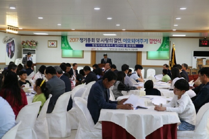 2017년 해남지구 사랑의 결연 및 이모되어주기 결연행사가 오늘(17일) 해남읍 해남뷔페 별관에서 광주지방검찰청 해남지청 신봉수 지청장, 법사랑위원 해남지역연합회 정진석 회장, 해남열 해남지구 협의회 회장을 비롯 법사랑위원과 60여 명의 결연학생이 참석한 가운데 열렸다.