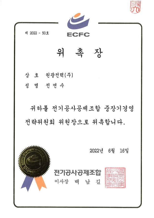 ▲ 전기공사공제조합 중장기경영전략위원회 위원장 위촉장